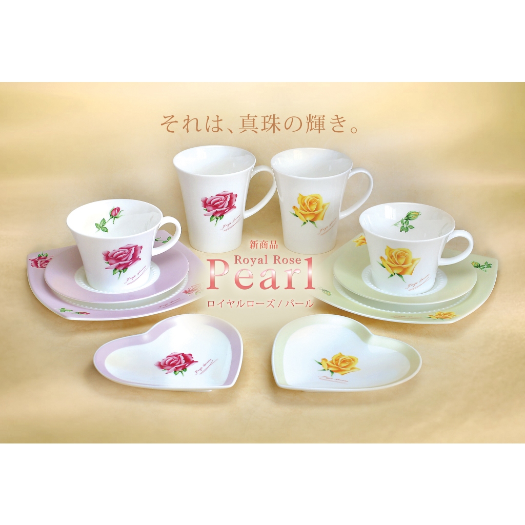 用於皇家玫瑰珍珠系列的精緻骨瓷源於1908年,由加賀藩前領主的前田家族及當 時有力人士在金澤成立的日本硬質陶器株式會社(現今的日本瓷器公司)獨特的 陶瓷技術,創造出充滿現代感的新型餐具。通過將骨灰含量提高到接近50%,創 造出無與倫比的透光性和卓越的強度,以及高雅的溫和纯白色等,塑造了新的美 感,成為當代骨瓷的傑作,獲得了高度評價。